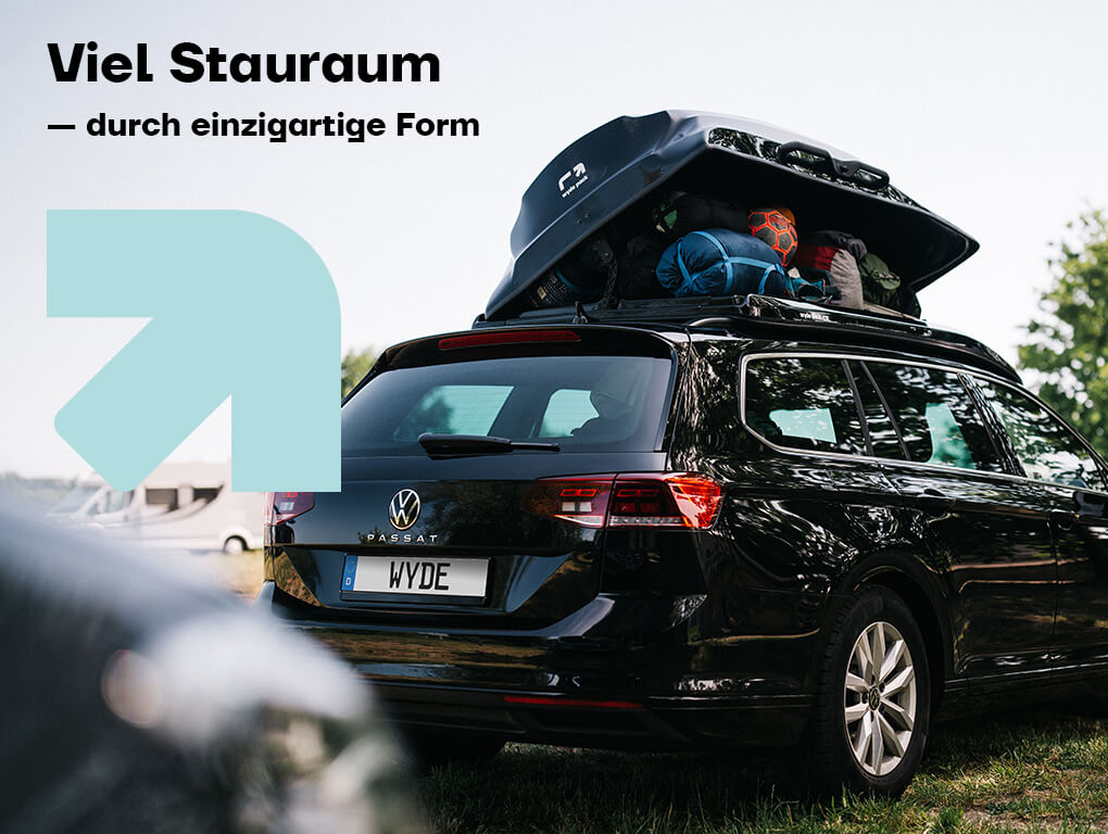 Erwydern Sie modernes Autodesign um unser aerodynamisches wyde pack. Ob im Urlaub, auf Angeltouren oder im Familienalltag – verzichten Sie nie wieder auf ausreichend Stauraum in Ihrem Auto. Seien Sie sich sicher: mit diesem intelligenten Design genießen Sie eine völlig neue Form des Reisens.