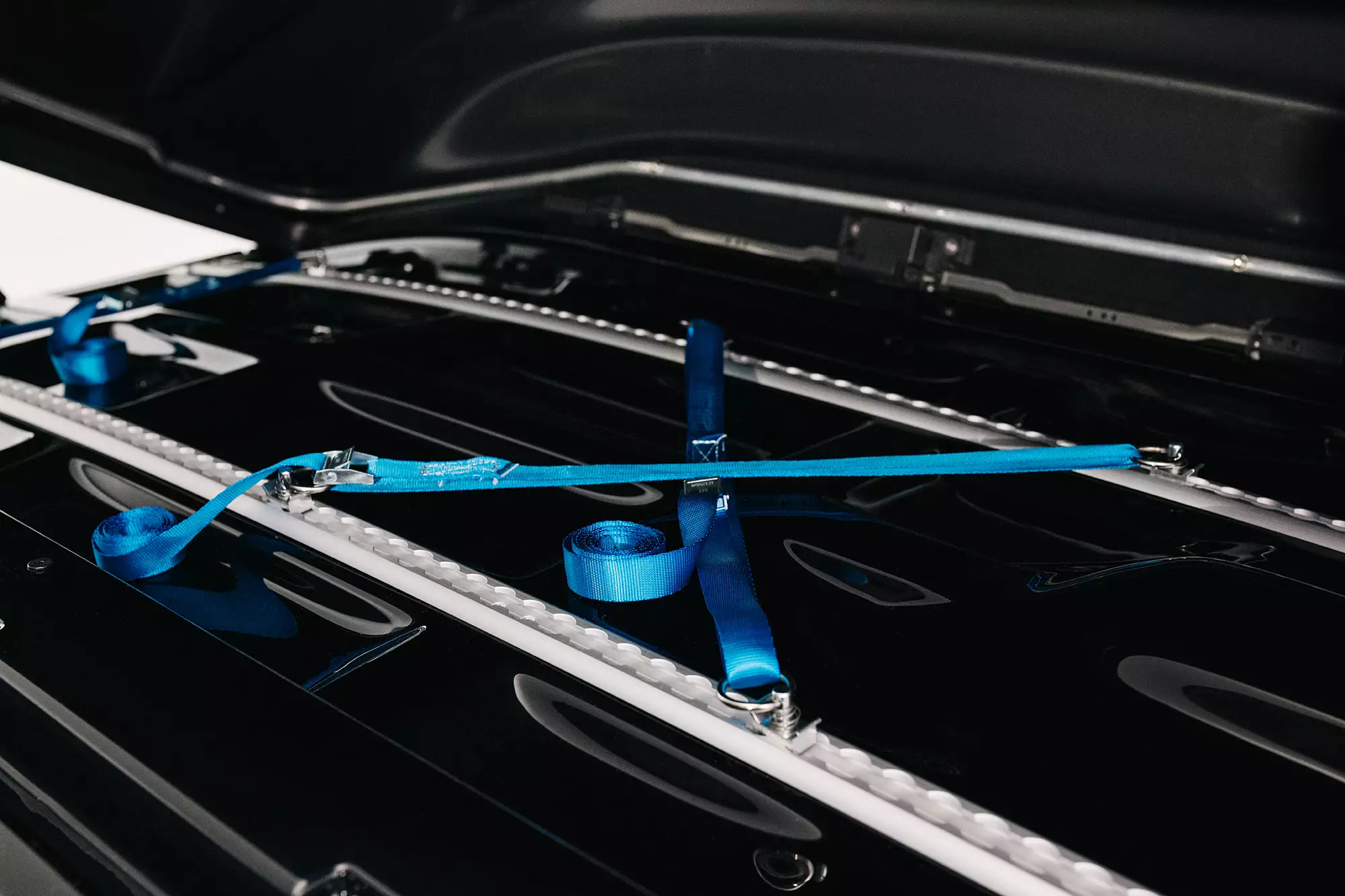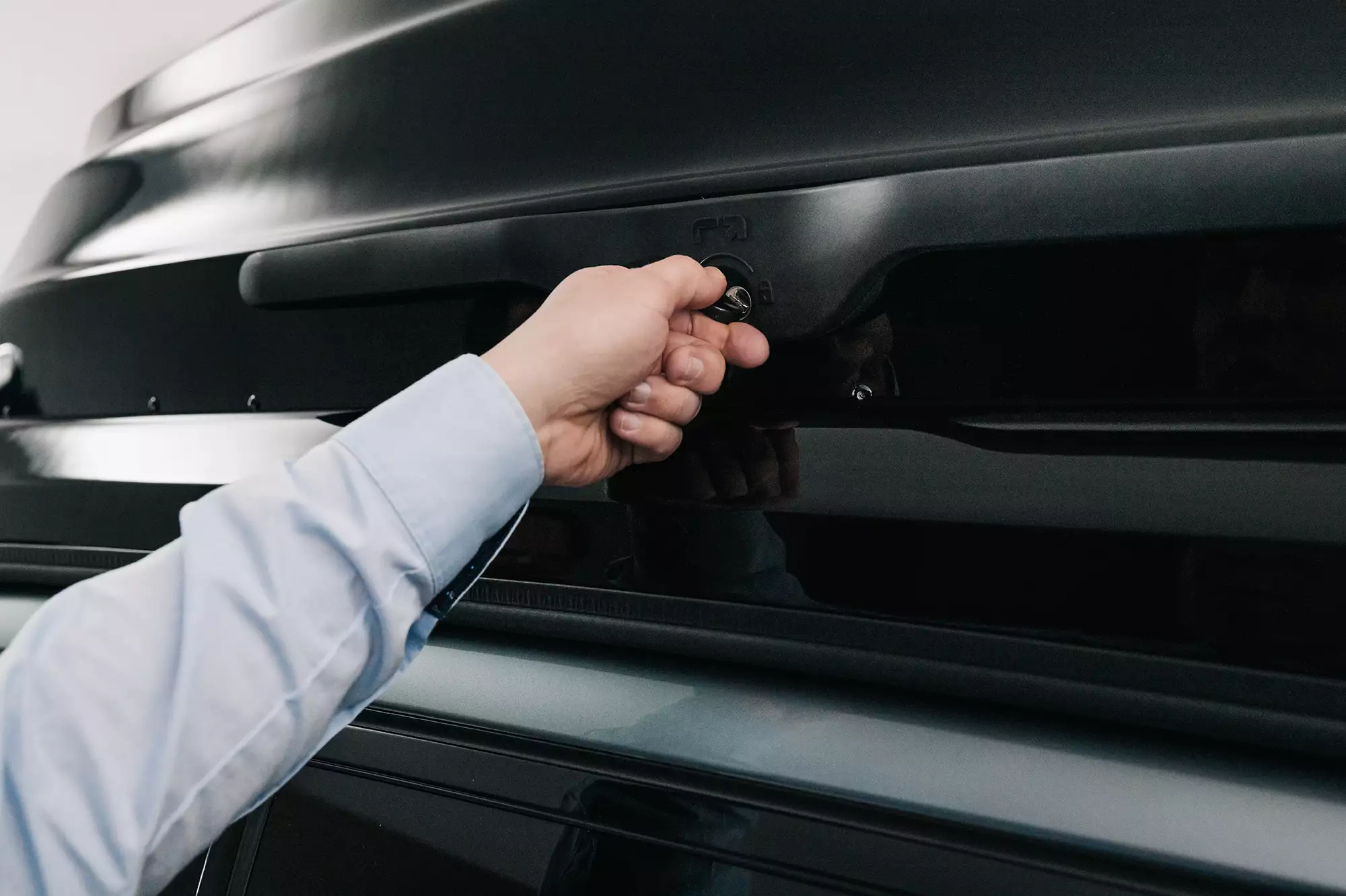 Das erstklassige und elegante Finishing erhält unsere Dachbox durch die brillante Oberfläche in Beaming Black.